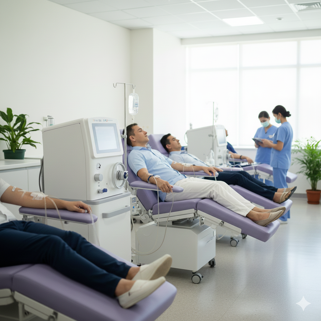 Dedicated dialysis unit with modern machines and continuous monitoring for safe and effective renal care.
