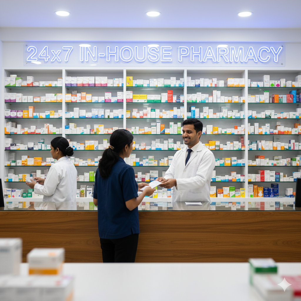 Round-the-clock pharmacy ensuring availability of essential medicines with strict quality and safety controls.